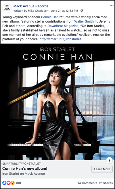 The young Steinway artist Connie Han has exhilarating technique, reminiscent of piano greats McCoy Tyner, Kenny Kirkland and Art Tatum. But her sense of style truly sets her apart! Morphist promoted the Iron Starlet album for months via social marketing and created original graphics like this fun image for “Connie Han Solo” on Star Wars Day.