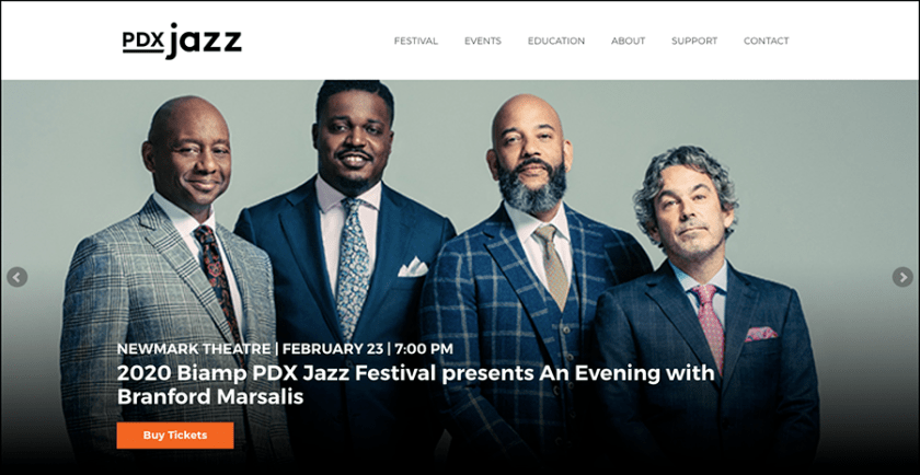 Morphist quickly streamlined site navigation, segregating headliners from partner venues and free shows. We created compelling imagery and copywriting for over 75 concerts, including 30 main events. Photos and graphics were configured to function properly within a responsive WordPress site design, utilizing a variety of page formats and aspect ratios. Artist descriptions were edited to emphasize persuasive content and institutional style.